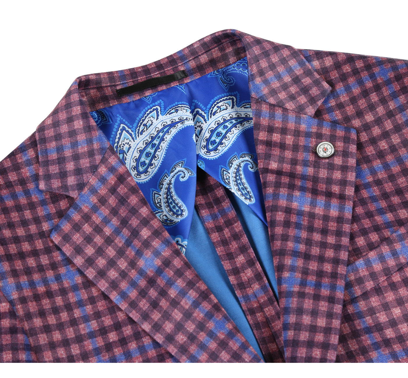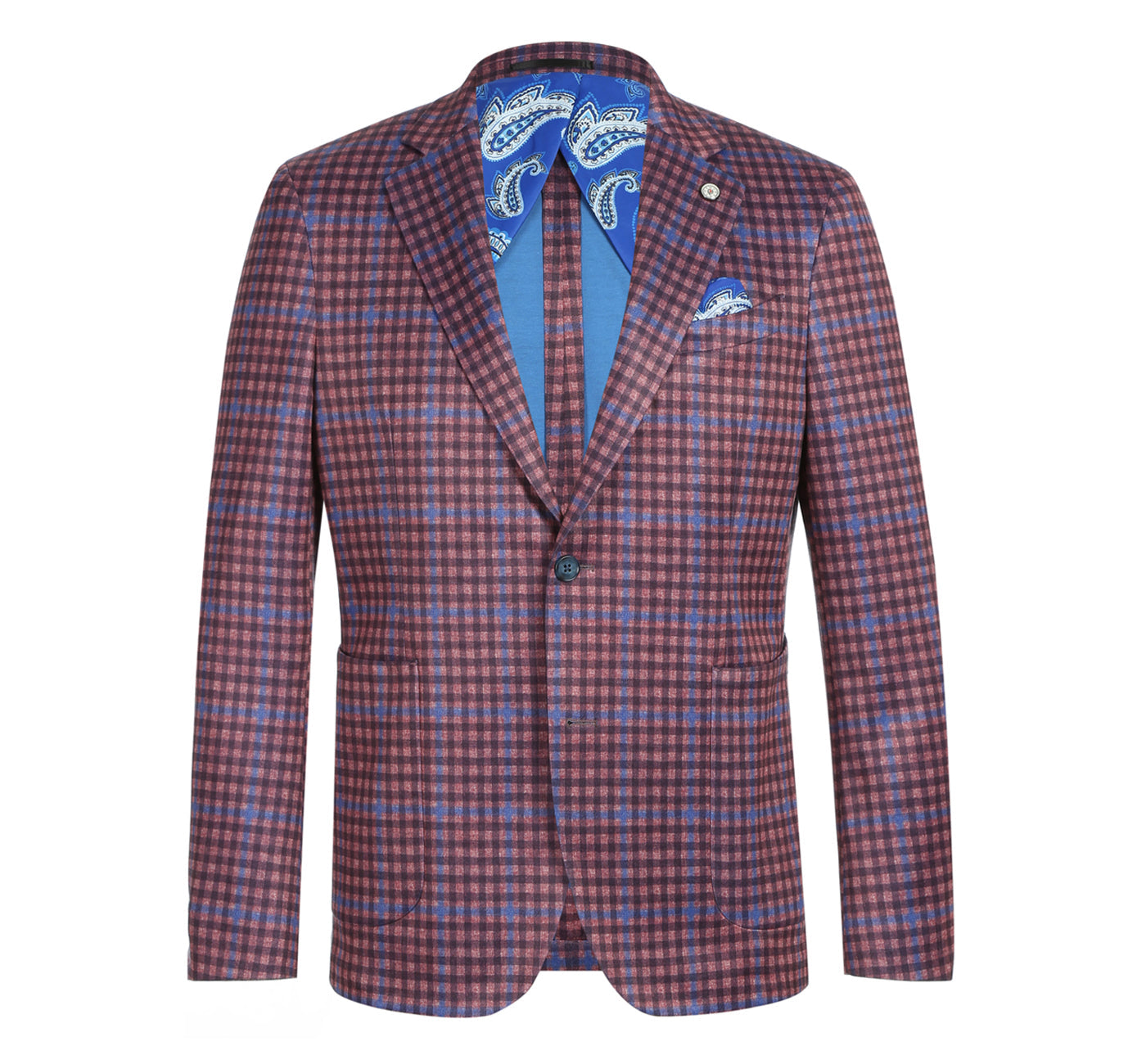 PS22-5 Men's Half Canvas Burgundy Windowpane Blazer