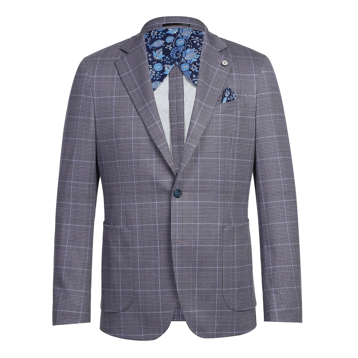 PS22-8 Men's Half Canvas Gray Check Blazer