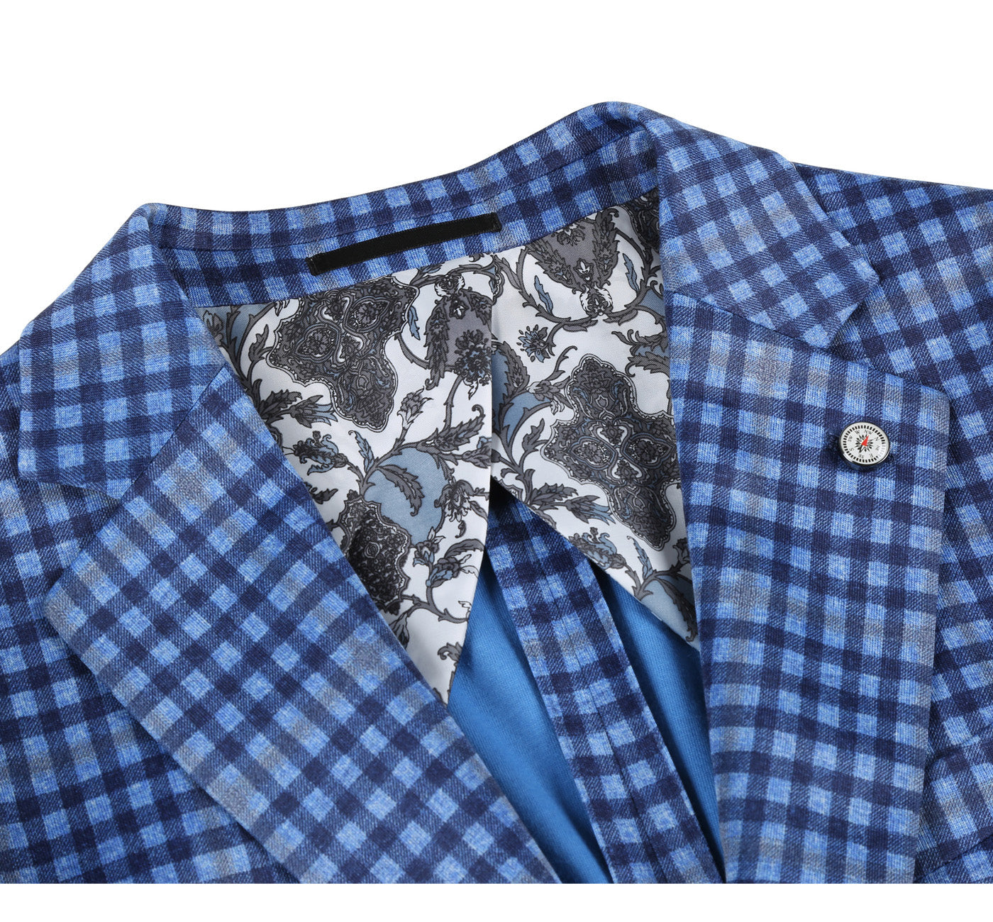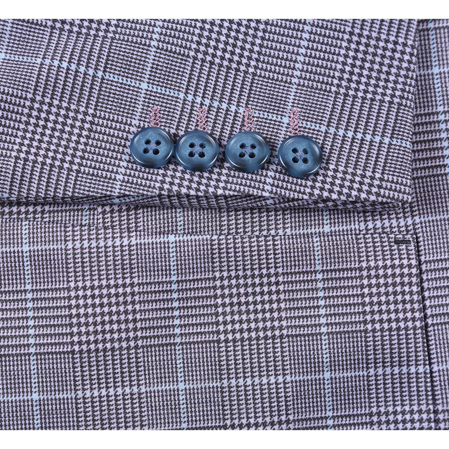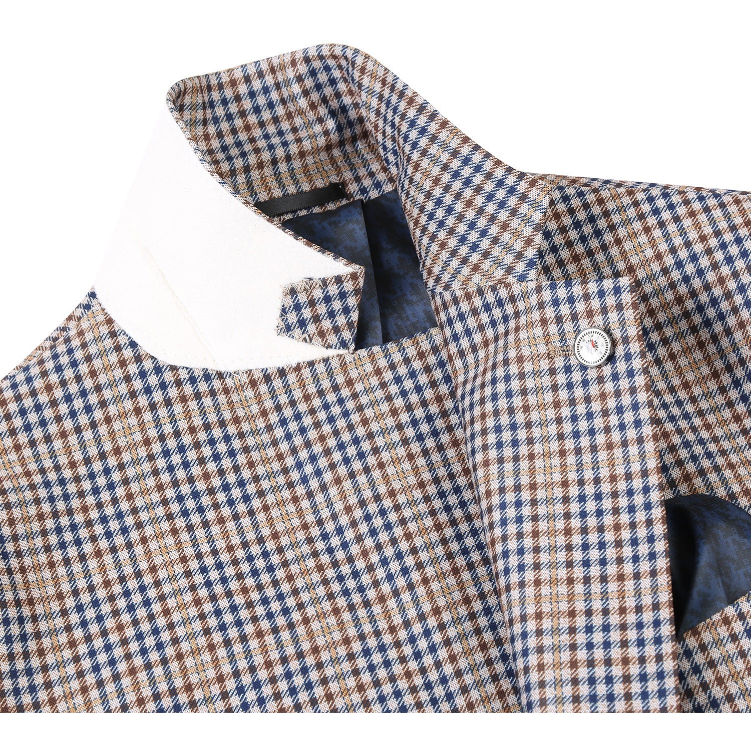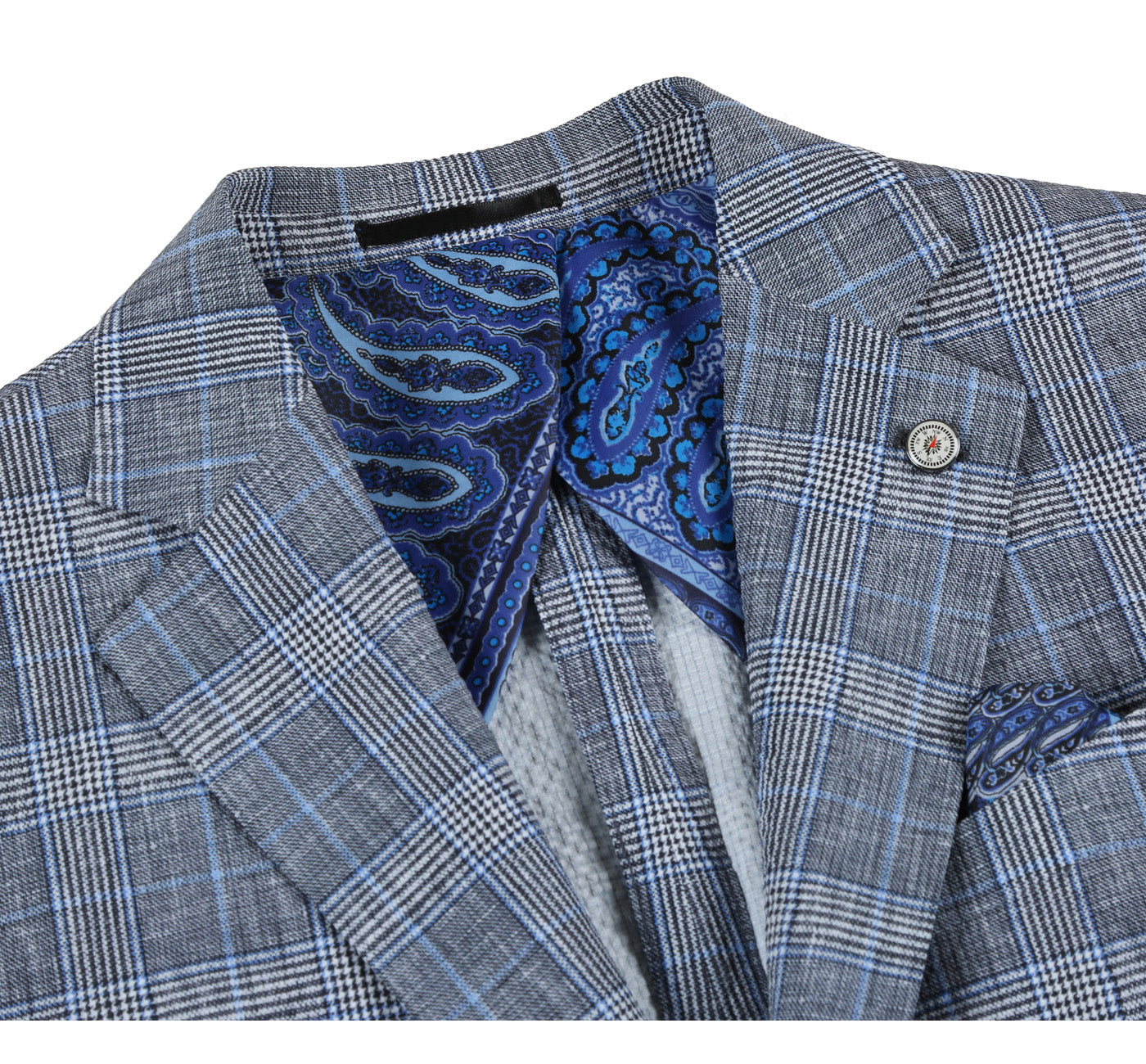 PS22-7 Men's Half Canvas Blue Plaid Blazer