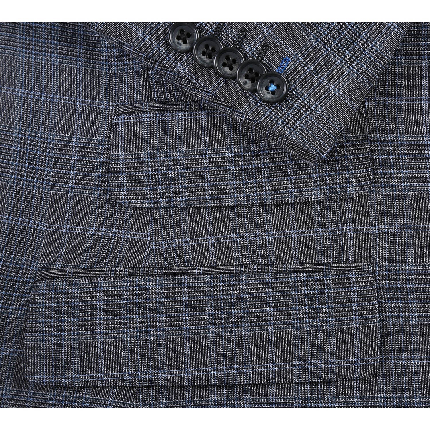 72-55-095EL Charcoal with Blue Check Notch Suit