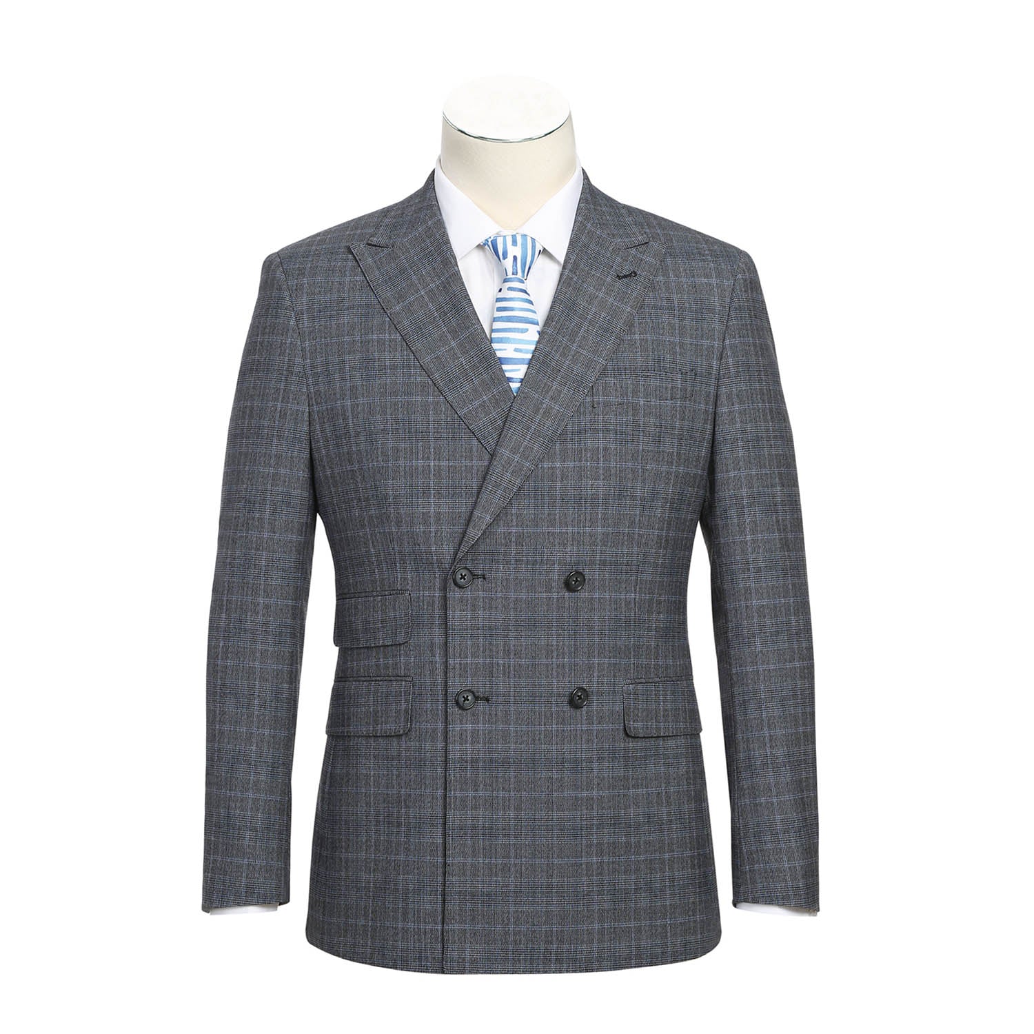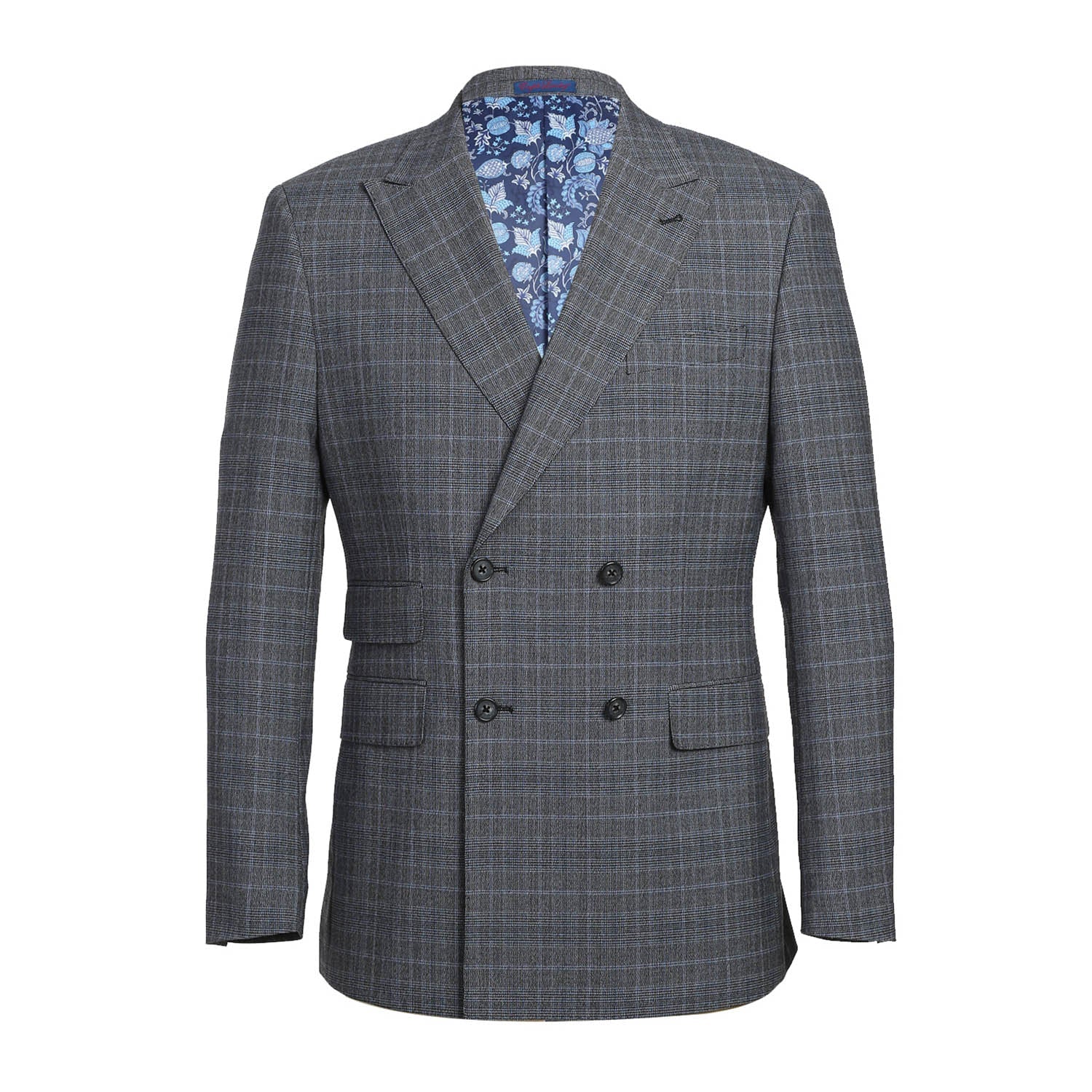 82-58-002EL Double-Breasted Gray with Blue Glen Check Suit