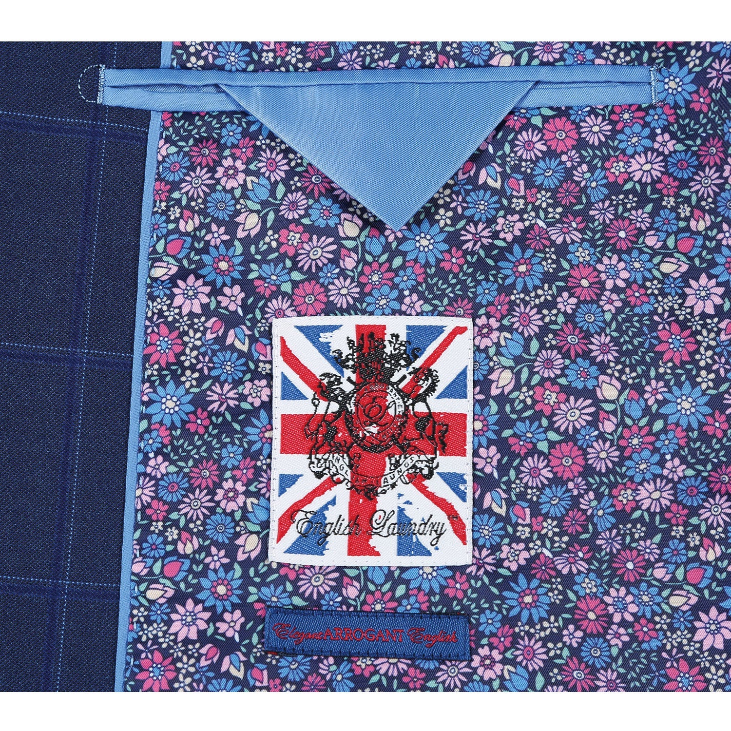 This dark blue windowpane check jacket is the perfect accompaniment to the matching pants, or wear standalone with chinos or dark denim, and smart knitwear.