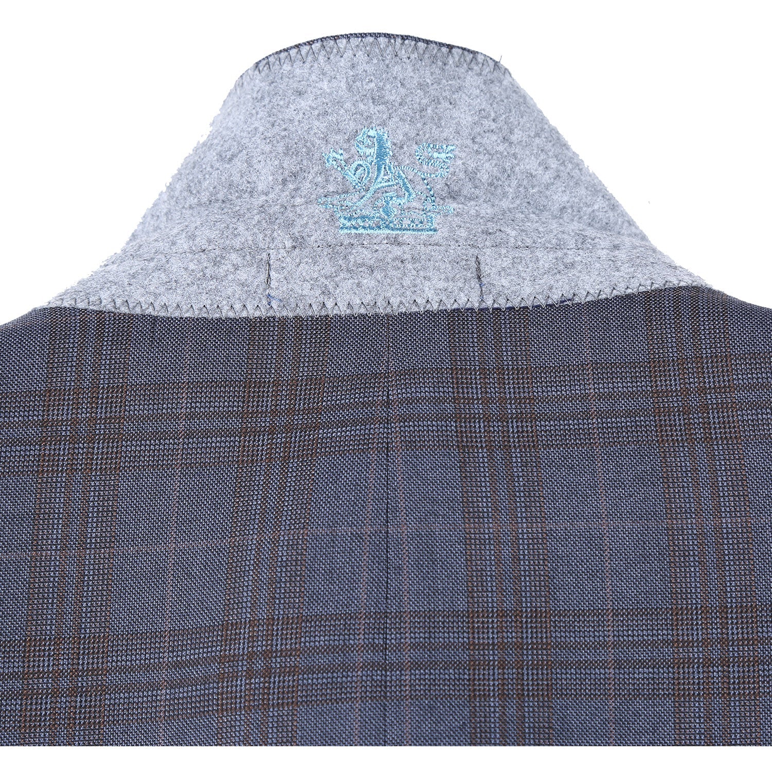 72-58-093EL Gray with White Blue Check Peak Suit