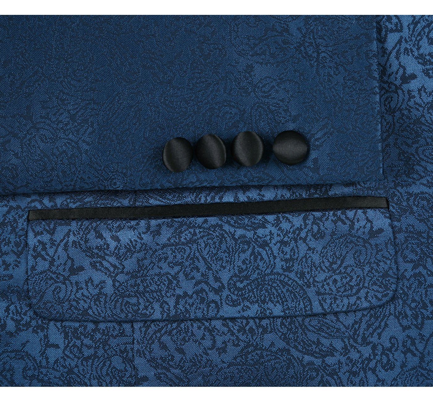290-4 Men's Slim Fit Peak Lapel Tuxedo Blazer With Embroidered Pattern