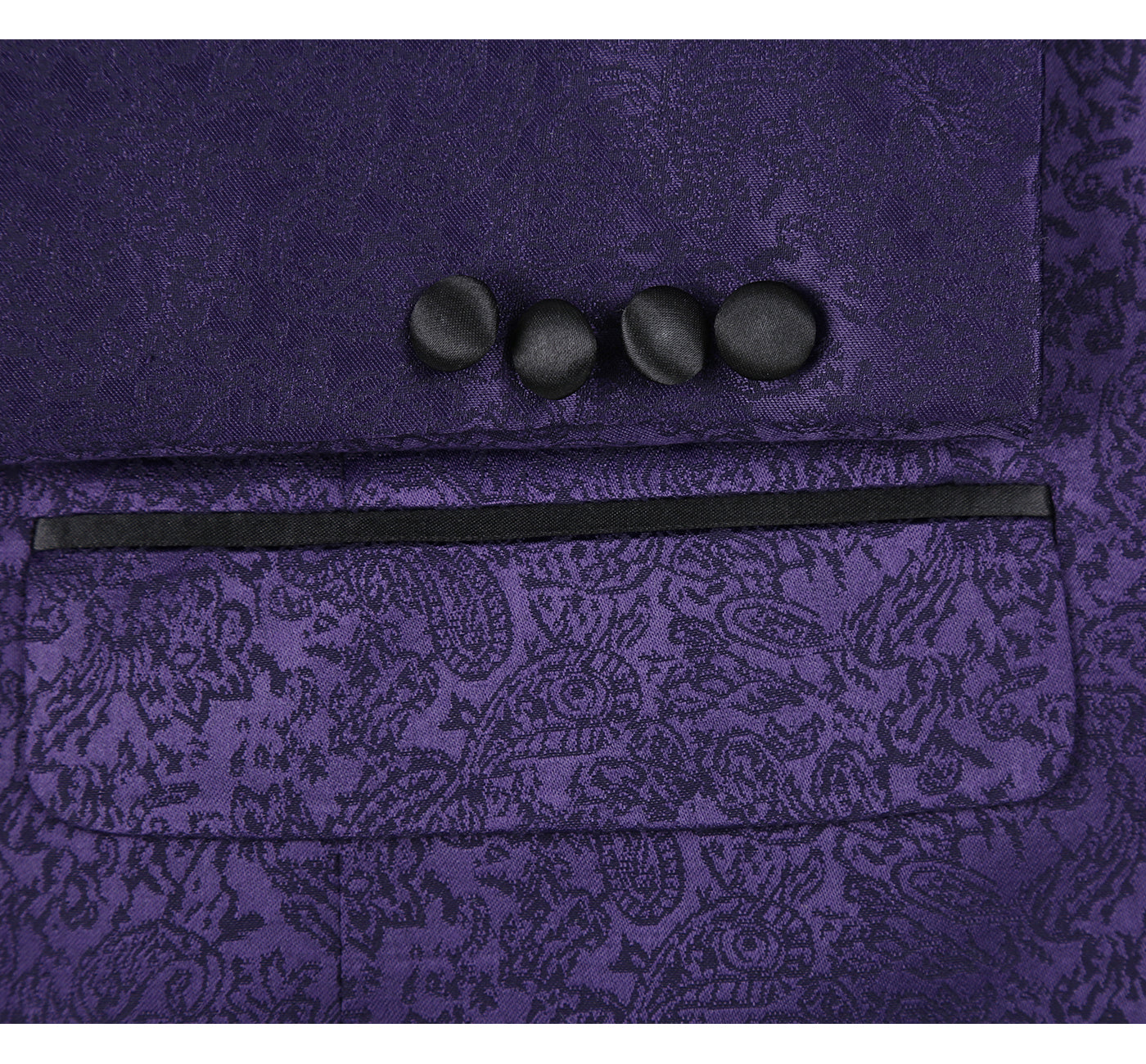 290-3 Men's Slim Fit Peak Lapel Tuxedo Blazer With Embroidered Pattern