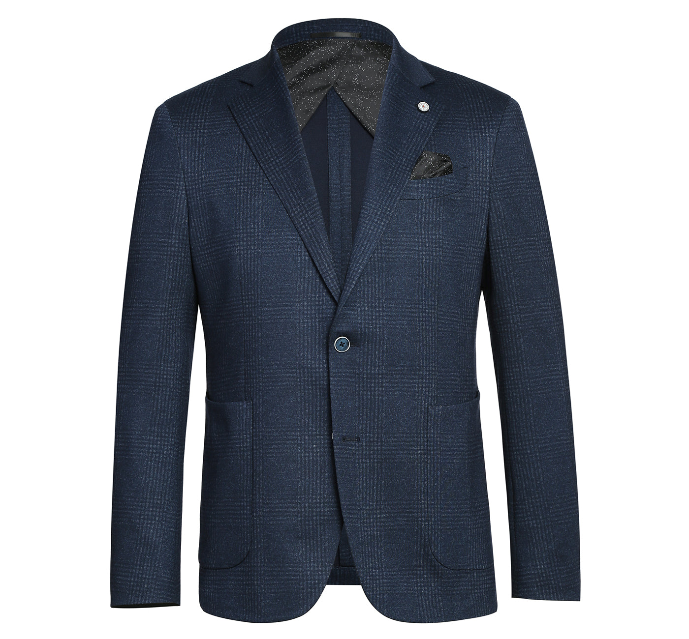 PF20-7 Men's Blazer Slim Fit Half Canvas Navy Glen Plaid Sport Coat